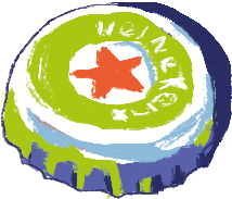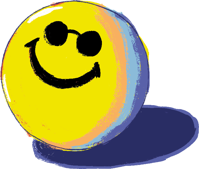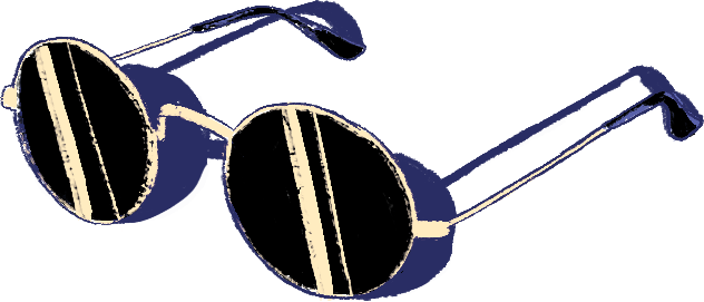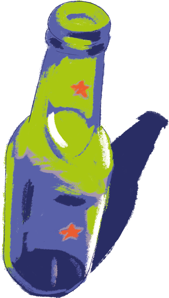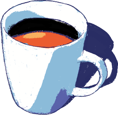 Stylized drawings using a very limited colour palette. The depicted objects are mostly stuff that's found at home.